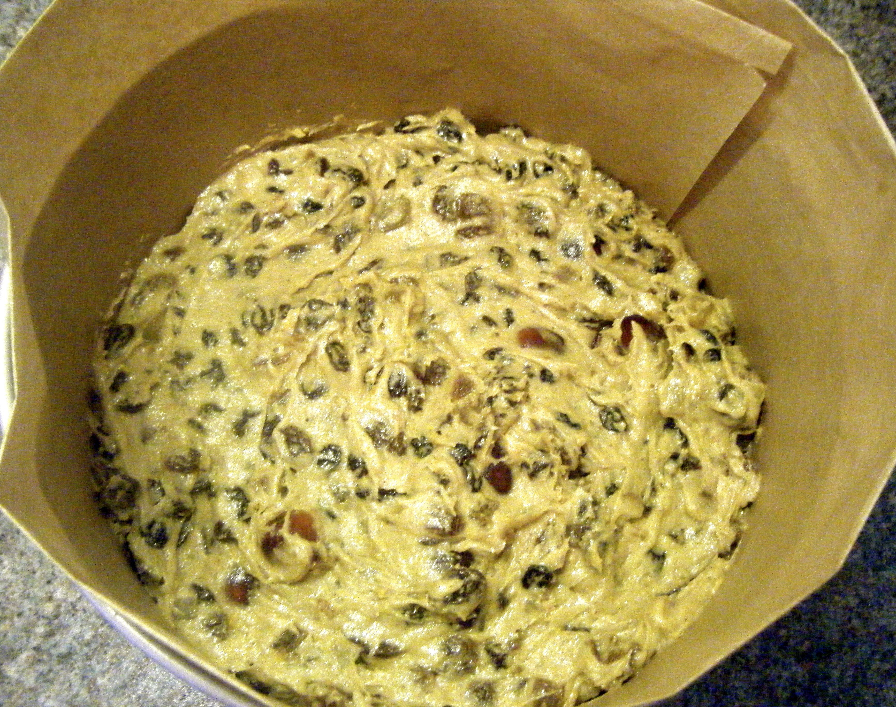 Finally, I stirred in the fruit and zest and added half the mixture to my lined tin.