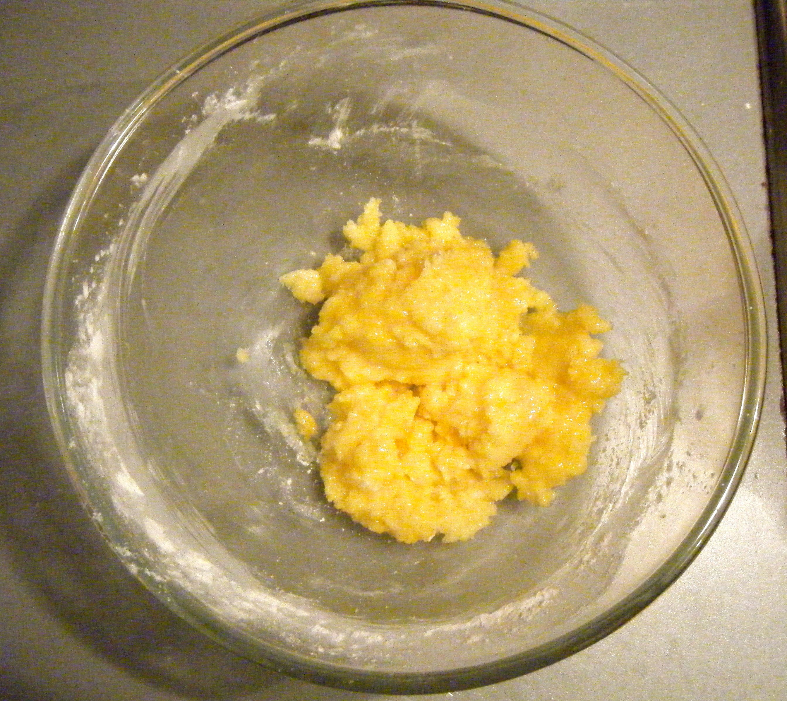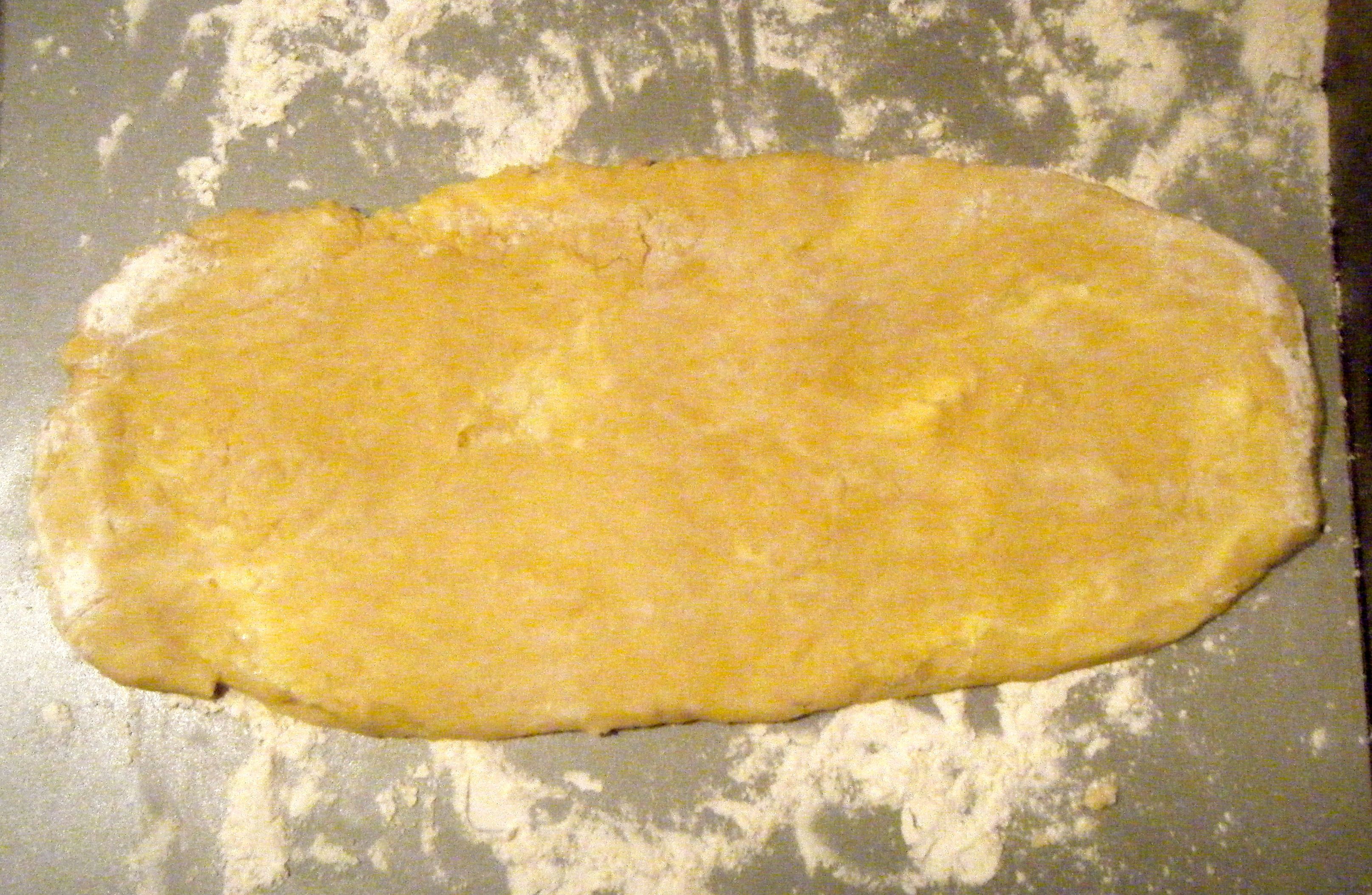 When I came to add the egg yolks, this didn’t work! I tried to blitz it but the ingredients were too packed in to get an even mix. So I tipped it out into a bowl and brought it together by hand. After working it for a while in the bowl, I tipped the pastry onto a lightly floured surface and gently kneaded it until it became smooth. It was quite a crumbly mixture so took a bit of working but it got there in the end. I then shaped it into a disk, wrapped it in cling film and popped it into the fridge to rest.