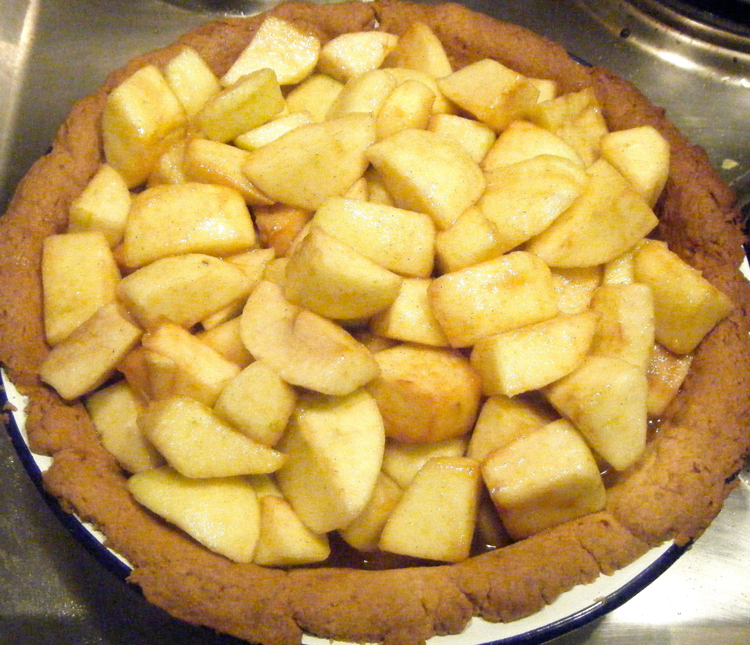 I filled the baked pastry with the apple mixture. This is where I potentially went a little wrong. The apples had given off a lot of liquid when I cooked them in the pan and I decided to add most of this to the pie. It seemed like the right thing to do but as you’ll see below, it may not have been!