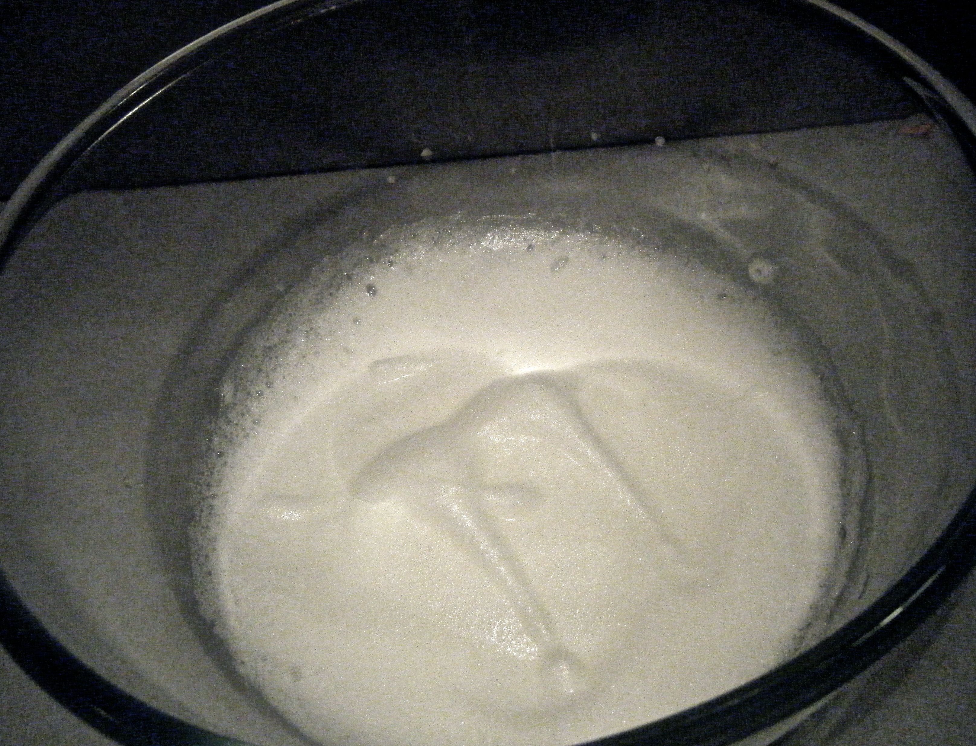 I added a pinch of salt to my egg whites and whisked them into soft peaks. I then added a little of the caster sugar at a time and kept whisking until I had stiff peaks.