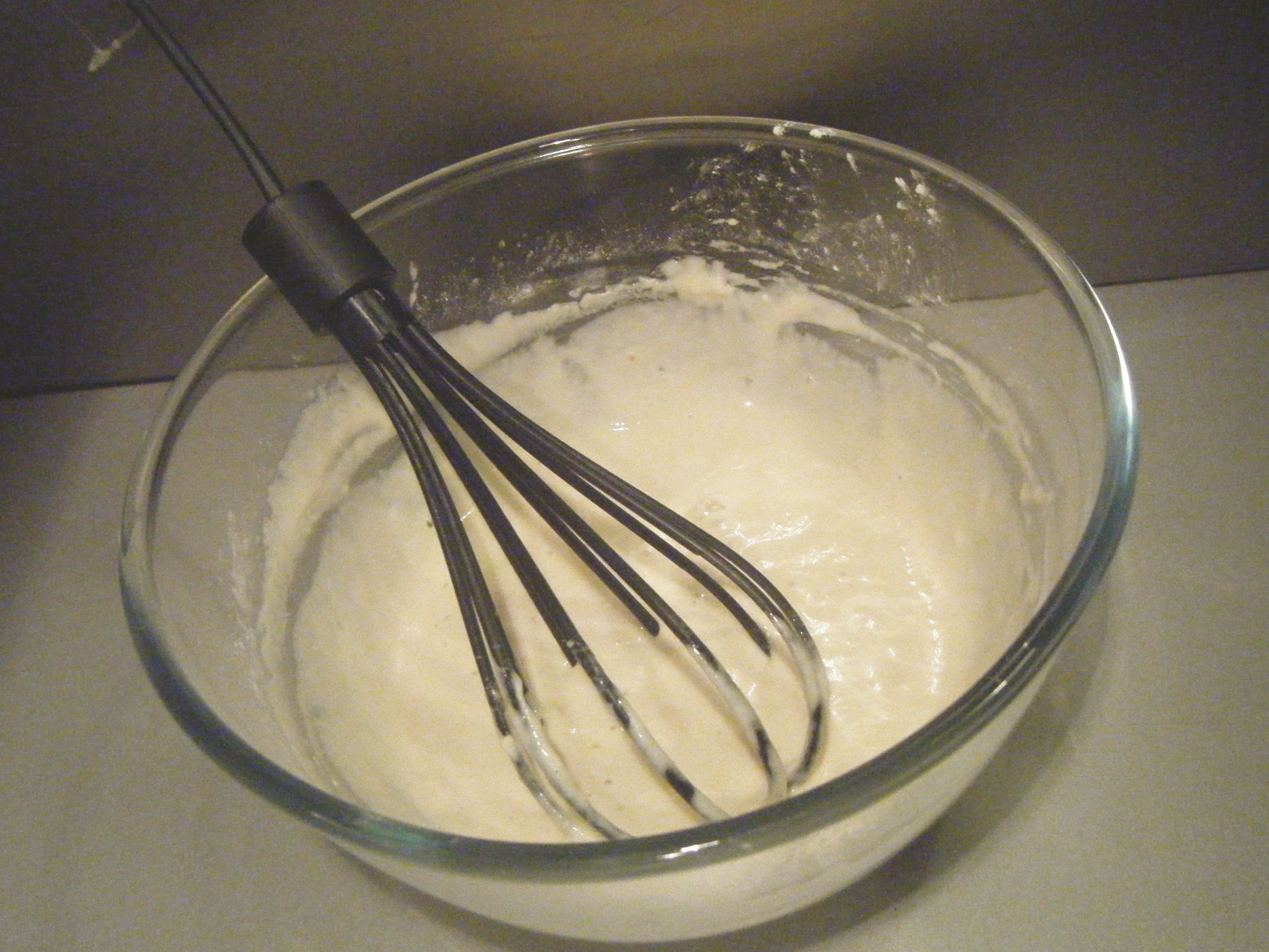 Once the aubergines were all cooked, I added the egg to the cooled béchamel sauce and finally I had all the component parts of the moussaka ready.