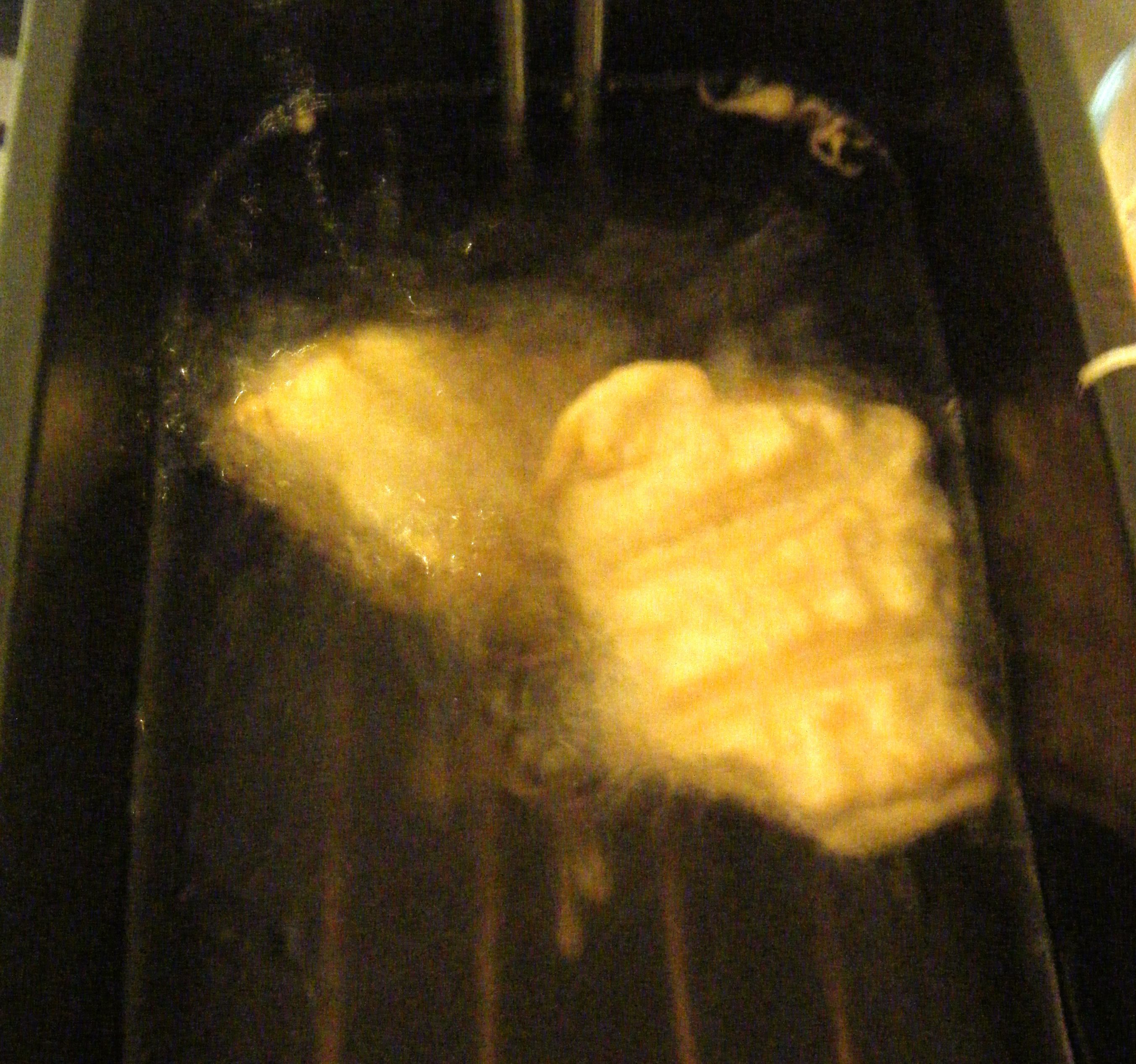 The next step was to brown the aubergines. I patted the slices dry, coated them in flour (by shaking them in a sandwich bag) and then fried them in batches. This seemed to take forever to do. It was only about 8 minutes per batch but because there were so many slices, it took ages.